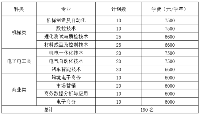 2024浙江机电职业技术学院高职提前招生面向浙江省单独考试招生考生,招生共计190名,具体如下: