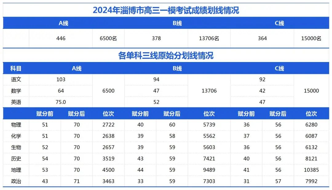 2024年淄博一模考试划线现已出炉,A线是446分,B线是378分。2024年参加淄博一模考试的考生人数大概有24500人,下文是小编整理的详细信息,供大家参考!