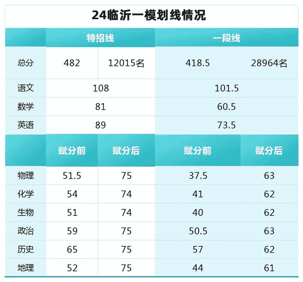 2024年临沂一模考试语文特招线108;数学特招线81;英语特招线89;,详细信息如下: