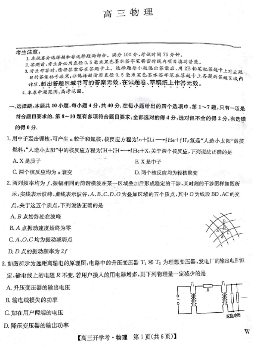 2025届九师联盟高三8月开学考物理试题及答案解析